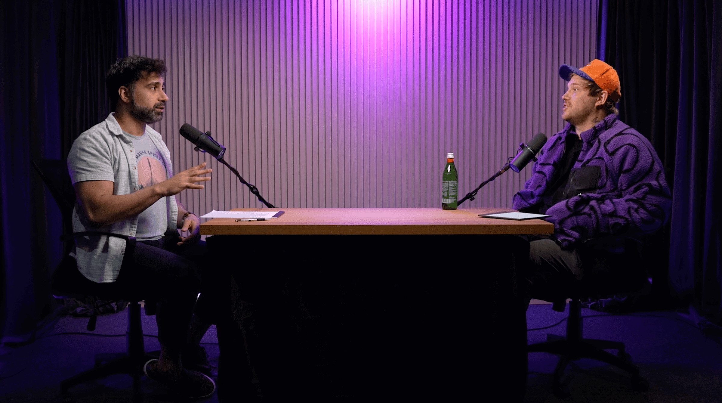 His last place looked like this, like a pretty stock-looking podcast studio, so it's a cool upgrade!