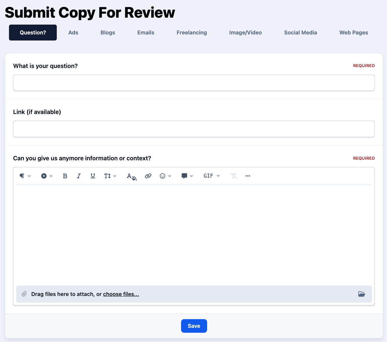 Did you know if you upload your question or copy on this page: copywritingcourse.com/post...