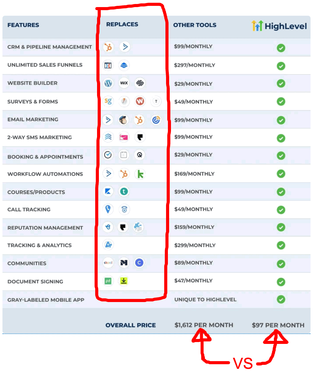 I love how this is displayed because it makes the user thing “I pay for all these other services, but this ONE product can replace all of them for cheaper....interesting!!”
