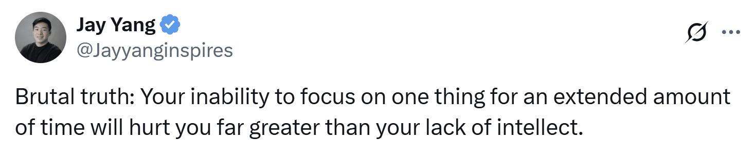Most of the successful people I’ve met are REALLY GOOD AT FOCUSING on a singular goal for a long time.