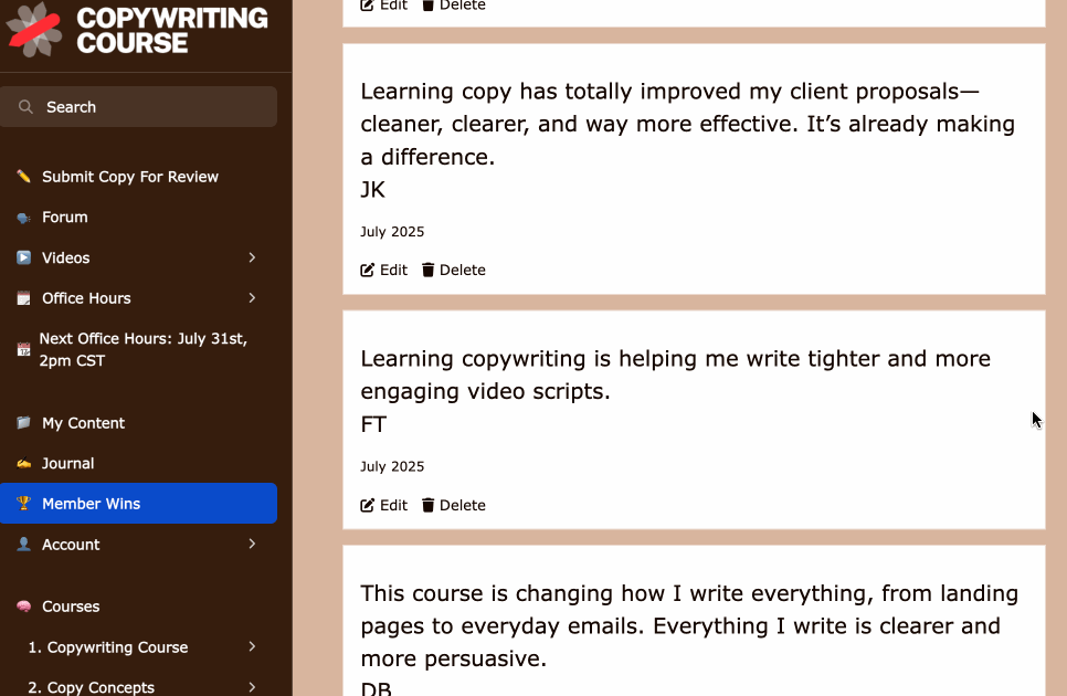 "The 1:1 personal feedback and critiques on the forum are so helpful." -DR