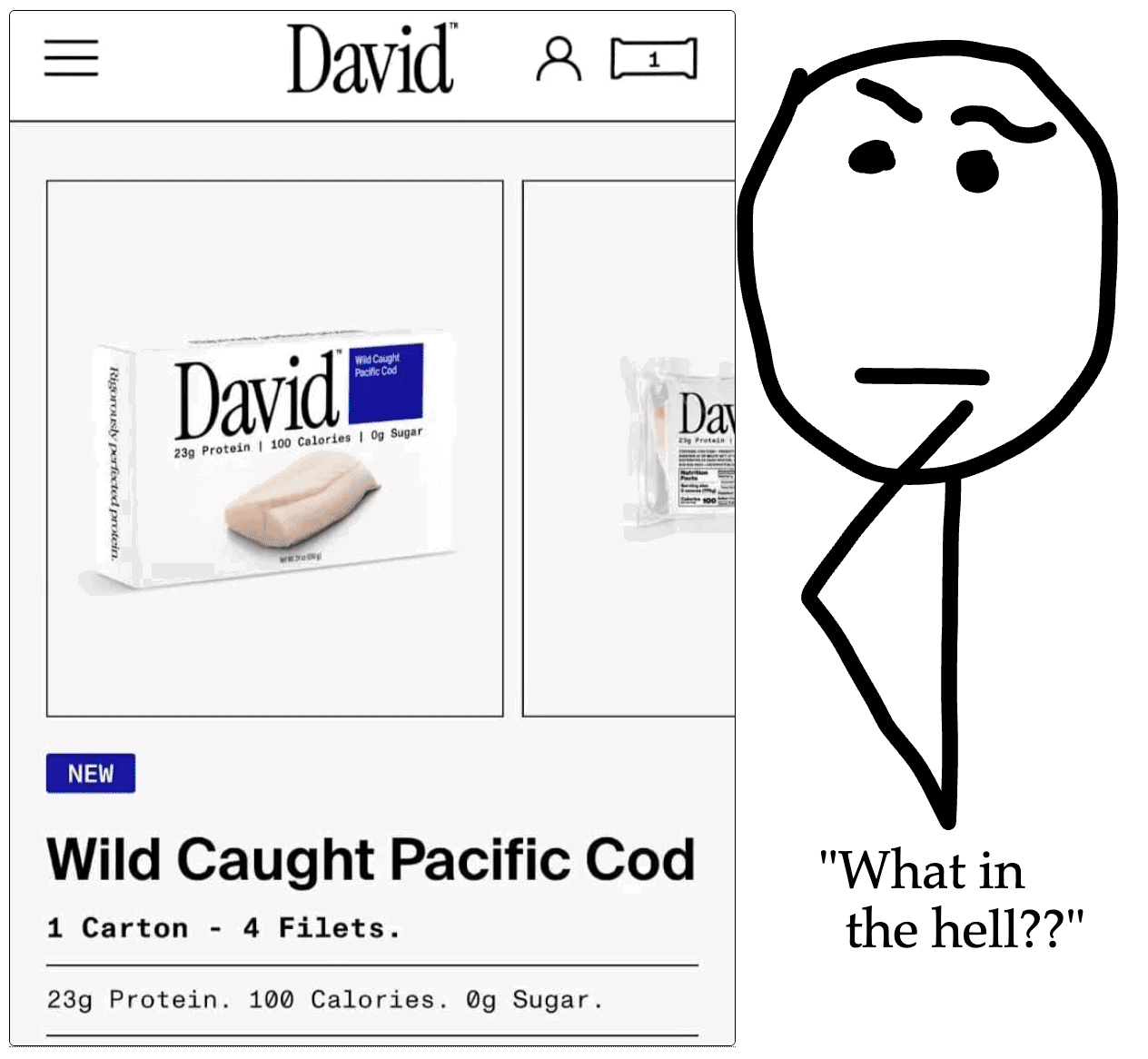 I’m sure it was thoroughly researched, but it’s a hilarious departure from David protein bars into selling David fresh....cod.