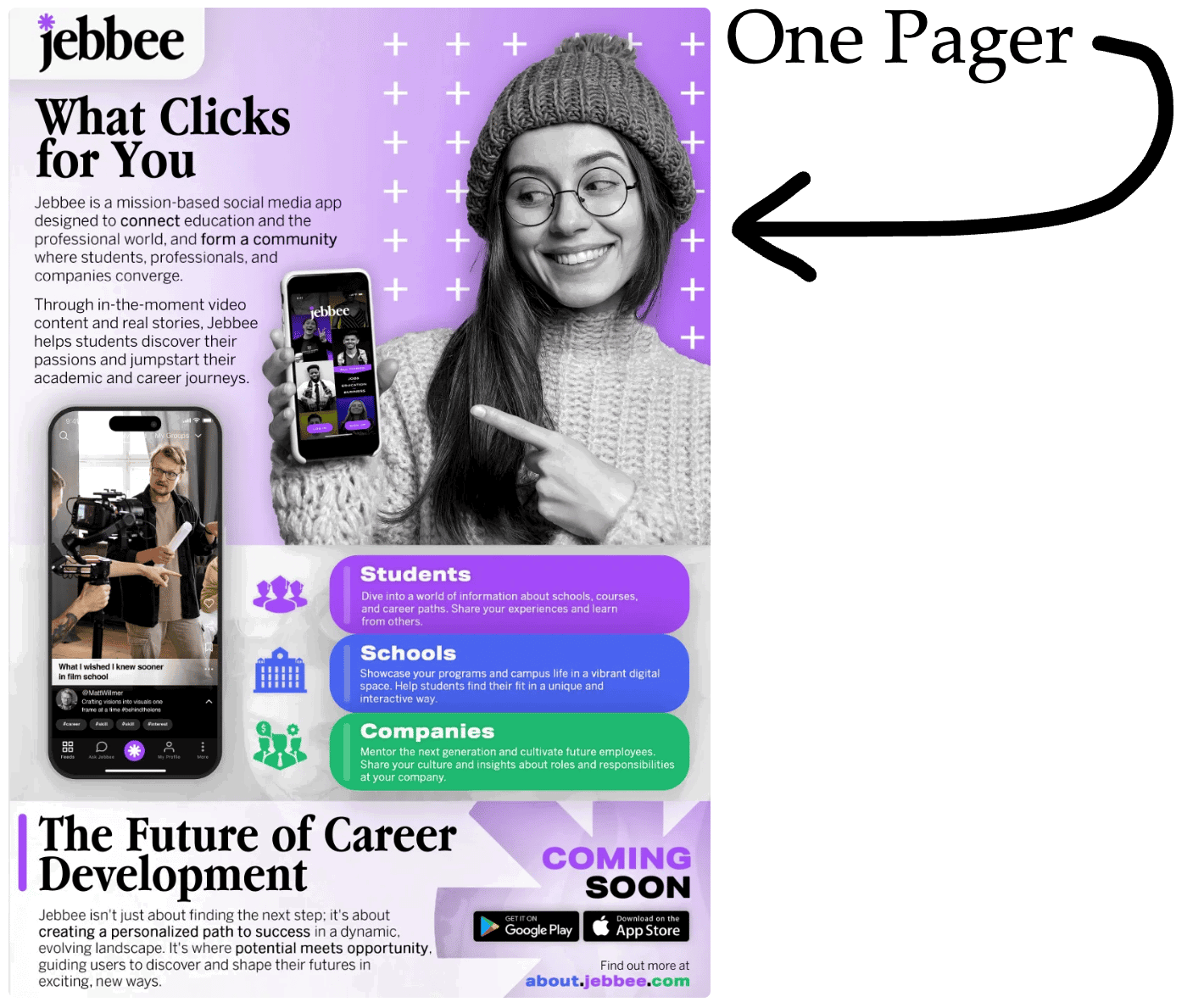 One Pagers are actually still common to hand out at things like conferences, events, or even for getting bills passed on congress. βThisβ particular one above is a PDF one-pager I got sent that explains what the app is, who it's for, and that it's an app that's about to release on Google. I thought this was interesting because I haven't seen a one-pager for an app before.