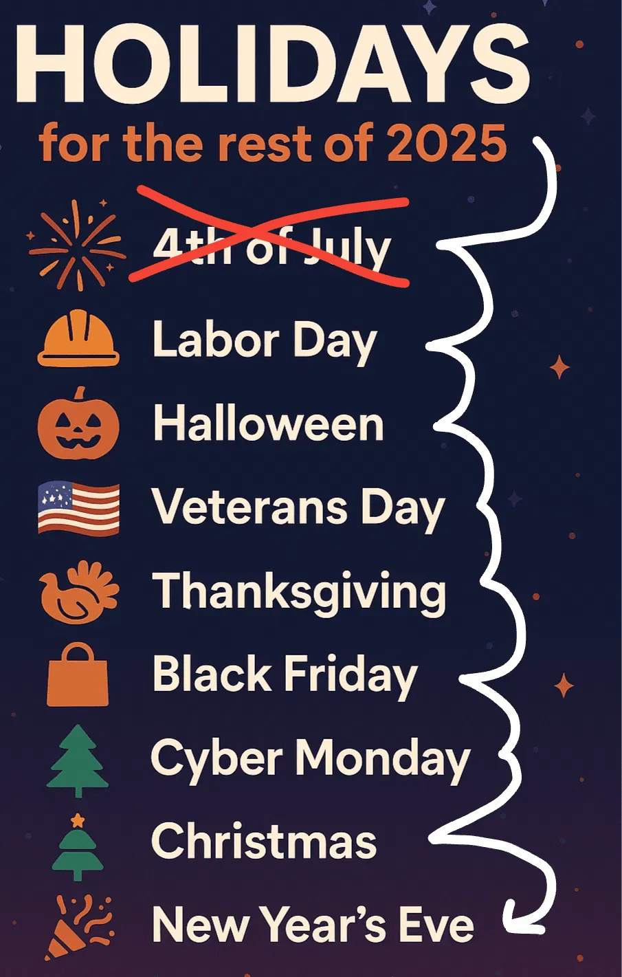 For example, these are real holidays for the rest of 2025 you can pick as deadlines to build a promotion around: