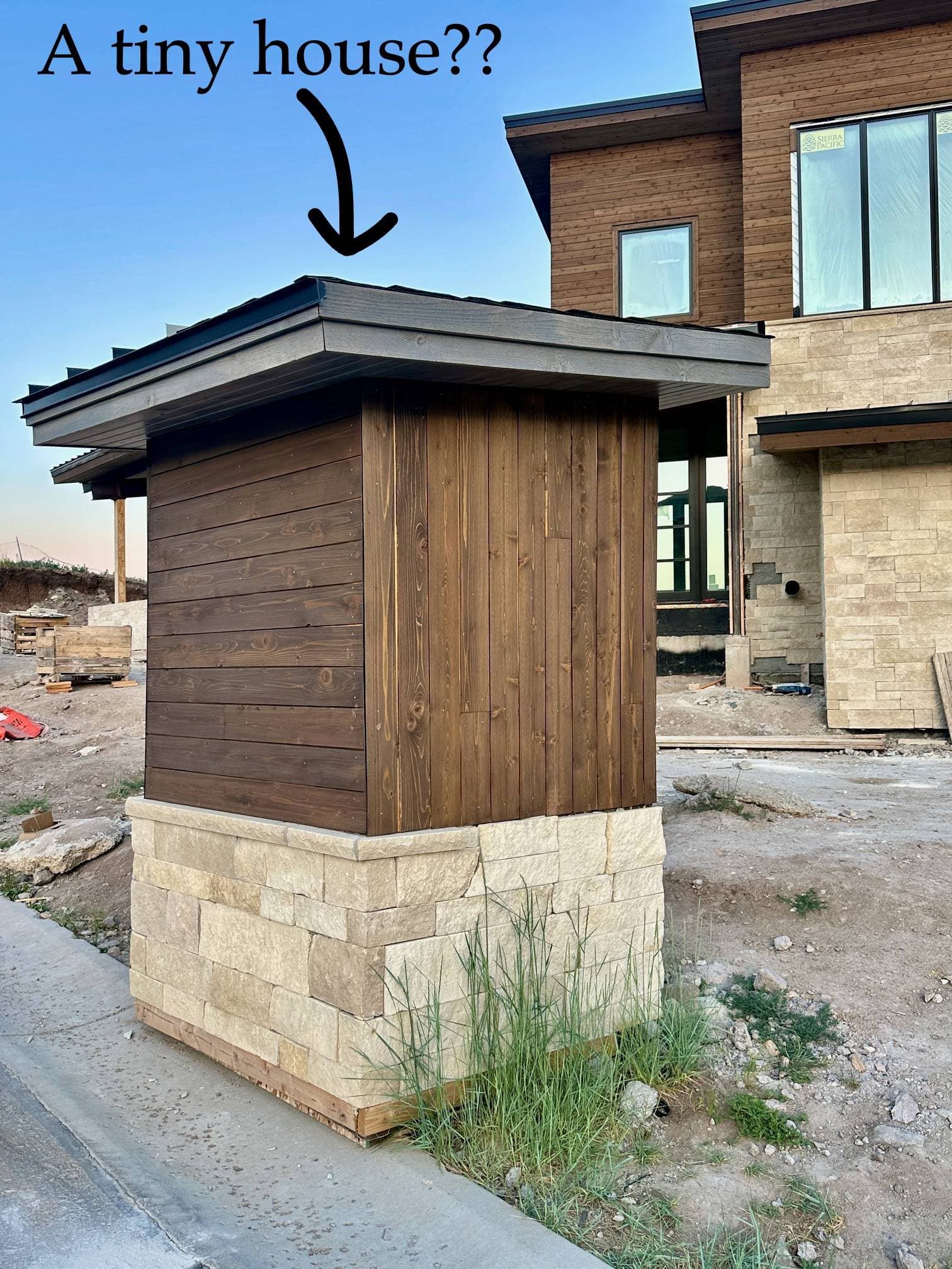 While we were walking around that really nice neighborhood in Park City, Utah I noticed this under-construction house and saw this tinnnyyy house: