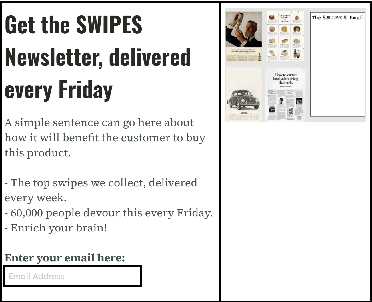 This is the simple email signup form The Morning Brew uses for their 4,000,000+ large email list.